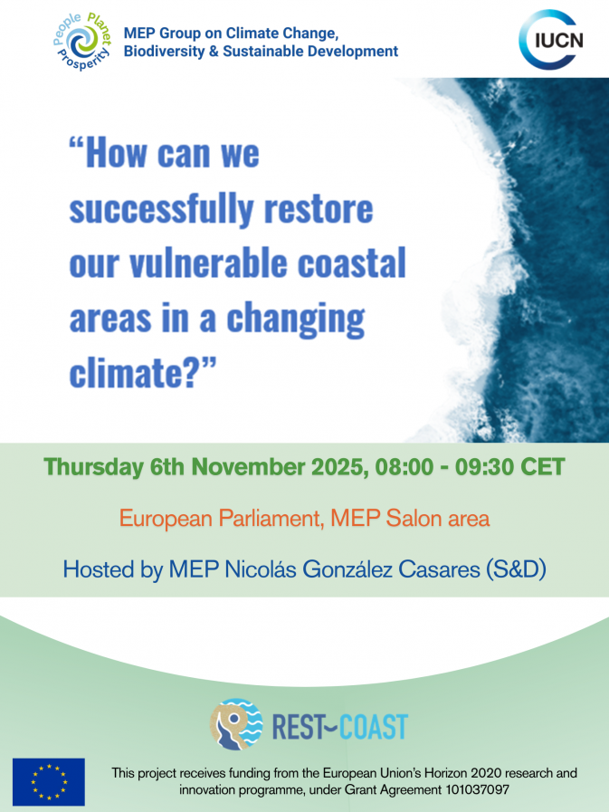 As part of its strategic policy engagement, REST-COAST will host a policy-focused breakfast event titled “How can we successfully restore our vulnerable coastal areas in a changing climate?” on Thursday, 6 November 2025, from 08:00 to 09:30 CET at the European Parliament in Brussels.